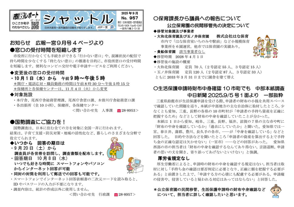 一宮市や市議会で話し合われていことは、私たちの暮らしに様々に影響しています。